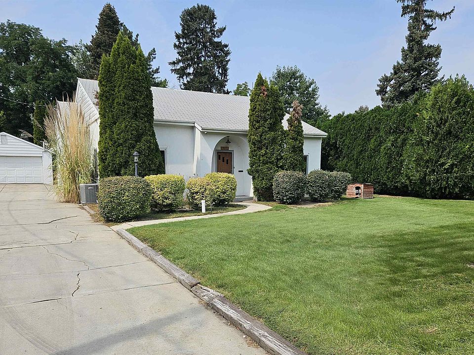 Charming single-level 3-bed / 2-bath home on a .26-acre lot with an oversized detached garage in a fabulous location on the Bench! Huge front yard with beautiful trees and flowers. Escape into your private backyard with large trees and a covered patio area. Inside is filled with charm and gorgeous hardwood floors. Huge windows bring in loads of light to a spacious living and great room. Oversized garage with a shop. A huge lot with potential to expand. Newer water heater and HVAC system. Separate private well used for irrigation. Extensive private driveway. A true must-see charmer.