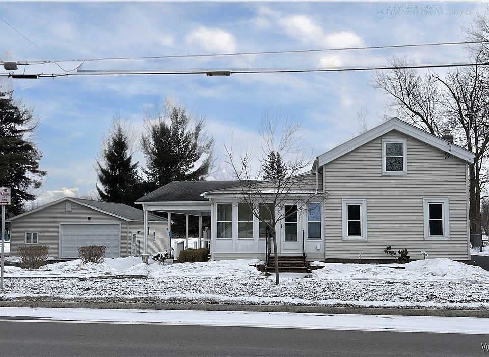 Truly lovely 2 bedroom 1 bath home. Spacious open floorplan. Largely handicap accessible. Bright open kitchen with gleaming granite countertops and large eating area with bay window. Family room with woodburning stove, and soaring ceilings and charming loft. Two generous sized bedrooms. Large full bath with heated floors. Maintenance free deck (accessible by stairs or elevator) with huge, covered area also encompassing the carport. Abundance of parking with circular driveway. Massive 1000 sq ft heated garage with Thermopane windows, and 50amp power supply. Additional 12 x 24 outbuilding. New plumbing. Fabulous location backing to the Butts Park with new skate board park, basketball courts, baseball/softball fields, and Oak Orchard Creek. Offers will be reviewed on Thursday 3/13 at 5PM.