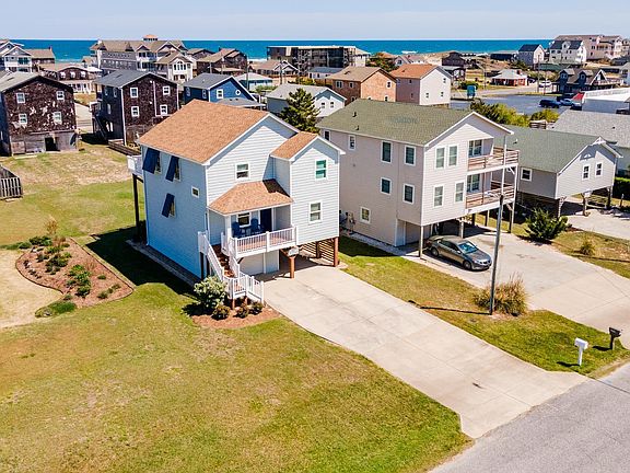Like New & Neat as a Pin! Welcome to The BEACH BUNCH—completely renovated and rent-ready for the 2025 summer season or perfectly suited as a year-round primary residence in the heart of Kill Devil Hills. Just a stone’s throw from the beach, this charming coastal cottage has been thoughtfully updated and impeccably maintained. Built by the highly respected Jeff Haskett Homes, this solidly constructed property was a beloved summer retreat, producing strong revenues and lifetime memories before becoming a full-time residence in 2007. Be sure to check the associated documents for a comprehensive list of seller upgrades—nearly $200,000 worth—including details of the extensive 2019 renovation. The home’s pristine condition is a breath of fresh air from the moment you step through the front door. The reverse floor plan showcases a vaulted great room, an inviting dining area, and a beautifully updated kitchen, perfect for entertaining or relaxing after a day at the beach. Upstairs, the spacious third-level bedroom opens to a covered porch and sunny deck—ideal for stargazing or watching the sunrise over the Atlantic. The second level features the foyer, three bedrooms, two full baths (including one ensuite), and a convenient laundry area. A breezy second-level deck connects to two of the bedrooms and provides the perfect spot to enjoy ocean breezes. A back staircase leads to a private outdoor shower, a relaxing hot tub, and convenient access to the carport and dry entry into an immaculate garage. The expansive garage includes a built-in workbench and a large storage room, complete with a full-size freezer that conveys with the property. Most importantly, a fully enclosed staircase offers a safe and comfortable entry to the home during inclement weather. (Please note: the garage and second-floor west-facing bedroom are temporarily being used to stage personal items as the sellers prepare for their move.) Located within walking distance to local Outer Banks favorites like Food Dudes, The Bonzer Shack, JK’s Restaurant, and Jack Brown’s Beer & Burger Joint, this home is ideally situated for beach days and lively evenings out with friends and neighbors. In case you missed it in the listing details, please take a moment to copy and paste this link into your browser and enjoy a one-minute video of this beautiful property: https://drive.google.com/drive/folders/18qkgXGCx7dJB-87NlhU46IVkW_92OFn7