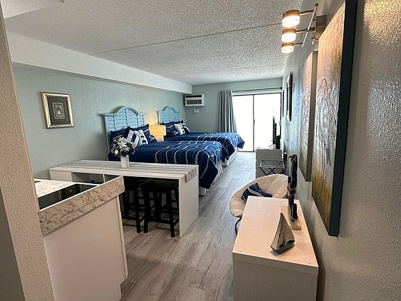 Refurbished unit. New beds, furniture, refrigerator, stove top, dishes, pots, utensils, kitchen supplies, coffee pot, toaster, trash cans, TV, comforter sets, sheets, towels, washcloths, shower curtain and liner, pictures, decorations, flooring, painting and shatter rugs. Everything is the unit has not been used (except for tub, commode and vanity in bathroom are not new) and the unit is not on a rental program. If your buyer is searching for a like new oceanfront unit - this is it. The monthly HOA fee includes all utilities. If you are looking for a place at the beach with "real" oceanfront views and access, nearby restaurants and shopping plus 4 miles to the airport, almost everything new, freshly painted and ready to go, this is it! Call today to see this unit!