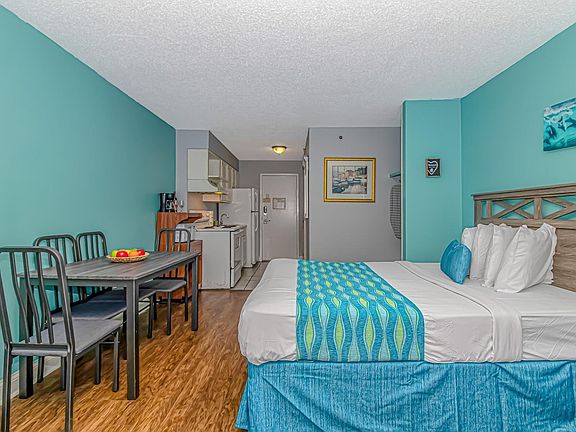 Check out this beautifully updated ocean view studio at the Sea Mist Resort. This 5th floor condo offers a partial Northern view of the Atlantic Ocean! This unit features newly installed flooring, paint, and so much more! This is a great income-producing property! The Sea Mist is a 12-acre oceanfront resort that features over 12 indoor and outdoor pools, hot tubs sauna, arcade, movie theater, water park, and so much more. This family-oriented resort truly has it all! This unit is sold fully furnished and currently accommodates 4 guests comfortably. A full kitchen is very appealing to both vacationers and snowbirds, making this a highly sought-after unit. Great rental history with very reasonable HOA dues. This is one of the best investments in Myrtle Beach!  Owner financing / seller financing available!