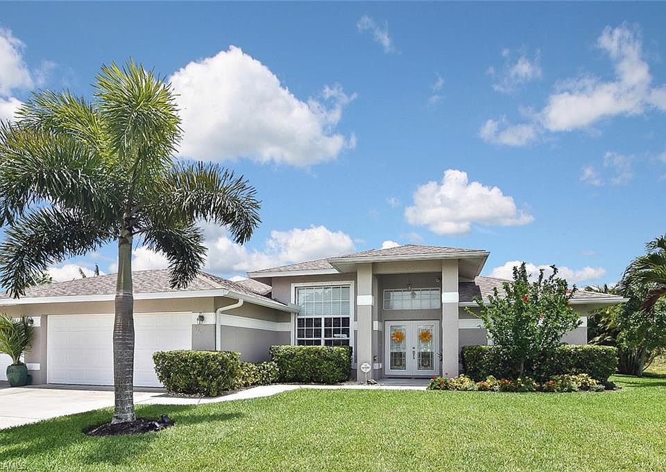 10k PRICE REDUCTION!!! ALL ASSESSMENTS PAID(lower tax bill!)!!MODEL HOME WORTHY, STUNNING AND LIKE NEW!!! THIS 3 CAR GARAGE ,2012 BUILT. SELLER SAYS NO FLOOD INSURANCE REQUIRED!BETTER THAN NEW CONSTRUCTION, POOL HOME HAS 0ver 75k in UPGRADES ! YOU WILL LOVE THIS BEAUTIFUL WATERFRONT POOL HOME WITH 3 BEDROOMS PLUS A SEPARATE VERY LARGE DEN THAT CAN EASILY BE A 4TH BEDROOM !! THE PROFESSIONALLY REMODELED KITCHEN(2016) HAS BEEN UPGRADED TO A TRUE CHEF'S KITCHEN WITH HIGH END INDUCTION COOKTOP SLIDE IN RANGE , BEAUTIFUL GLASS BACKSPLASH, WOOD CABINETRY, GRANITE COUNTERTOPS, WINE BAR WITH TEMP CONTROL WINE FRIDGE, LARGE STORAGE PANTRY . HOME HAS NEW UPGRADED LIGHTING, CUSTOM HIGH END BLINDS, EXTRA LARGE PAVERED DECK BY THE SOLAR HEATED POOL, RAINSOFT WATER SYSTEM, 2 MOUNTED TV'S WHICH CONVEY, NEW UPGRADED MASTER BEDROOM CARPET, SEAMLESS GLASS SHOWER AND TUB IN MASTER WITH DUAL VANITIES, NEW LEADED GLASS FRONT DOOR, POOL BATH, NEW POOL PUMP ,LUSHLY LANDSCAPED YARD WITH FRUIT TREES(AVOCADO AND BANANA). NUMEROUS OTHER UPGRADES. CALL AGENT FOR DETAILS. LOCATED IN THE SW CAPE AROUND NUMEROUS NEW HOMES. QUICK DRIVE TO SHOPPING, DINING, AIRPORTS, MATLACHA, CAPE HARBOUR, BEACHES ETC.