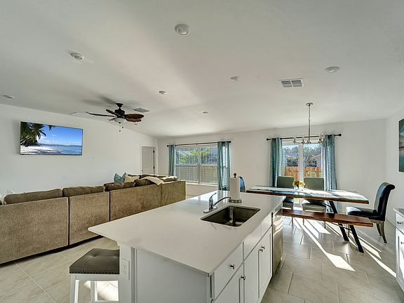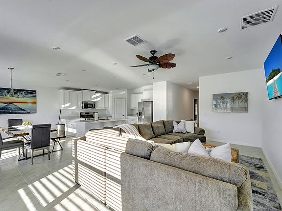 Welcome to Green Luxe! Experience comfort and relaxation in our modern, spacious, open concept home. This is the perfect house for groups of families and friends. Only a 7 minute drive to i-75, this is the perfect stop for making day trips to some of southwest Florida's most popular beaches like Englewood and Venice. You'll be close to the US-41 strip which is filled with restaurants and stores. Only 7 miles to Charlotte Sports Park Unwind in a modern getaway, elegantly designed with your peace in mind. From coffee, appliances, to towels, and plenty of amenities to make your stay comfortable and enjoyable. The open concept layout in the living, dining and kitchen area makes it the perfect trifecta to relax with the whole family. The bright open kitchen island is stocked with everything you need to make a delicious meal. And we have 4 beautifully decorated bedrooms to accommodate your friends and family. Perfect for Families & Groups up to 10 people 4 Comfortable Bedrooms - 5 Beds Coffee Station Ping Pong Table & Entertainment Activities Open Living Area & Fully-Stocked Kitchen Relaxing Modern Design High-Speed Wi-Fi Full Size Garage Washer and Dryer Units Living Area 65" inch TV and Entertainment Center Coffee Table Large Couch to Comfortably seat up to 8 guests Dining Table - Seats 8 The Kitchen Area Large quartz kitchen island Seating for up to (4) Fully Stocked with Pots and Pans Full Size Stainless Steel Fridge Stove/Oven Range Microwave Toaster Blender The Coffee Bar Coffee Maker Keurig pods Sugar Mugs Master Suite Comfortable King Bed Lounge Area with Sofa Fluffy Pillows 55 inch Smart TV - Includes apps like Netflix, Prime, Hulu etc. Full Dresser Nightstands En-suite Master Bathroom Double Vanity Oversize walk-in shower with glass panel Large walk in closet Shampoo, conditioner, body wash provided Guest Bedroom # 1 Comfortable Queen Size Bed 55" in Smart TV Fluffy Pillows Full Dresser Night Stands Guest Bedroom #2 Queen Size Bed Closet Dresser Guest Bedroom #3 Queen Bed Closet Guest Bedroom #4 Bunk Bed for up to 3 people Closet Guest Bathroom: Tub/Shower Vanity Additional amenities provided: *Pack n Play *Ping Pong Table *Outdoor Grill *Board Games Must sign extended stay agreement. Security deposit and first month's rent due at time of signing. Rent is available up to 6 months. No smoking in the unit. No parties or large gatherings.