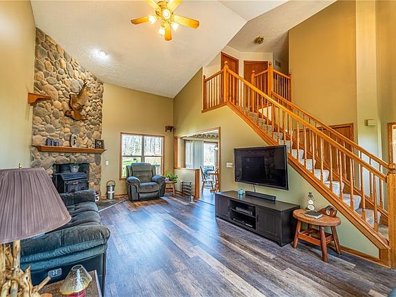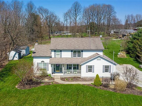 Great location! Beautiful piece of property with 2.97 acres of land in Lake Township! Wonderful colonial home with 3 bedrooms, 2.5 baths and first floor laundry. Welcoming two story foyer with hardwood floors open to the spacious great room featuring a stone, floor to ceiling fireplace, cathedral ceilings, open oak staircase and a wood burner. Continue your way into the eat-in kitchen with access to a very large wood deck and a 21 ft. above ground pool for relaxing or entertaining. The spacious kitchen is fully applianced with solid surface Meridian countertops and ample cabinets for storage. Formal dining room with oak chair rail and crown molding, a half bath and first floor laundry complete the main level. Head upstairs to the large master bedroom with a walk-in closet and a master bathroom with a Jacuzzi tub. Two additional bedrooms and a full hall bath complete the second level. The full, open lower level has great potential for finishing and has been plumbed for a full bath and has two egress windows. Two car attached garage, covered front porch, panoramic views and a 1 yr. home warranty included. Call and schedule your showing today!