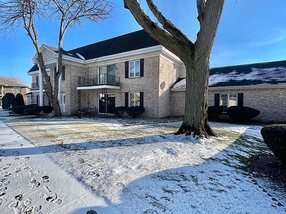 PRIME LOCATION! Nestled in a quiet cul-de-sac, this well-maintained brick condominium offers the perfect blend of comfort & style. Located across the street from a serene natural pond, this main-level unit is ideal for those seeking both tranquility & convenience. Only minutes to shopping, hospital & expressways. Enjoy peace of mind with two entrances and a secure intercom system. The large eat-in kitchen boasts ample cabinet and counter space, newer stainless steel appliances & opens to a formal dining room filled with natural light. The expansive living room features a charming brick fireplace, built-in hutch and leads to the balcony. Both bedrooms include huge walk-in closets and new remote-controlled light fixtures. The bathroom is updated with a new toilet, ceramic tile flooring, and granite countertop & the unit is freshly painted throughout with new flooring. A finished laundry room with a 50-gallon water heater adds functionality, while the shared attached garage provides lots of extra storage space. The garage space is the space to the right closest to the man door to the unit. Garage refrigerator & freezer will stay. There are also a carbon monoxide & smoke detectors.Monthly HOA fee includes water and trash and exterior maintenance including balcony & sliding doors, windows are excluded. No pets allowed, except for documented emotional support animals. NO RENTALS. Roof on unit is only 10 years old.
