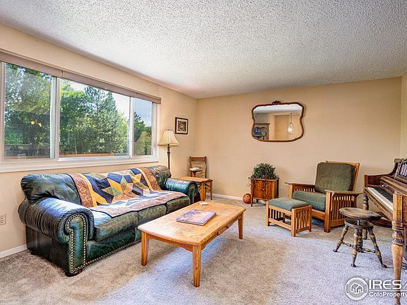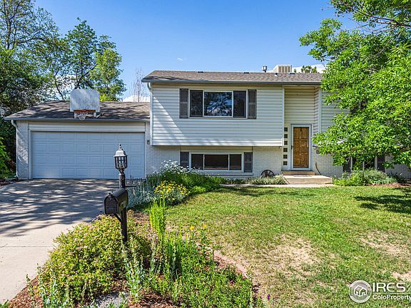 Enjoy this great 4 bed, 2 bath house on a huge lot! The light and bright living room leads to the kitchen and dining area. Plenty of cabinet and counter space. All appliances are included. The primary bedroom has a nice walk-in closet. Full bath upstairs and 3/4 bath downstairs. Cozy rec room downstairs with a wood burning fireplace. Big garage with lots of shelves. The fully fenced outdoor living space is great and offers a freshly painted deck, pretty patio, garden beds, and tons of space. Located close to Loveland's Sculpture Park, North Lake Park, Lake Loveland, and more! No HOA! No Metro District! Make this home yours today!!