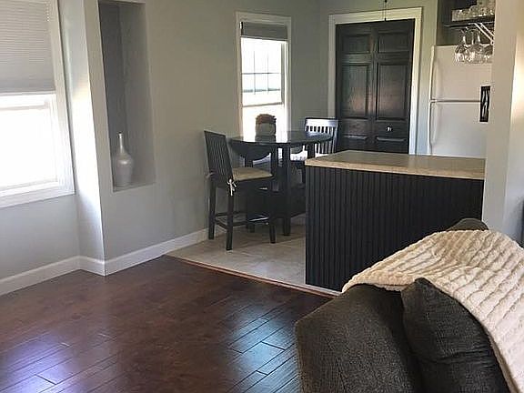 Updated two bedroom, one bathroom centrally located in Davenport near St. Ambrose and Genesis! - Private patio. -One car garage with two off-street parking spaces. -New hardwood floors in main living space. -New carpet and paint in bedrooms. -Full basement with washer and dryer. -Refrigerator, gas stove, dishwasher and microwave stay. -Central air conditioning and a natural gas forced air furnace. -Fenced in backyard.