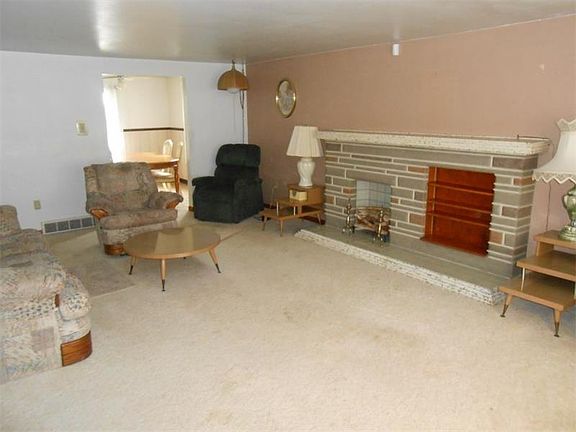 Solid brick ranch with plaster walls, multi-pane windows and hardwood under carpet with long private driveway situated on 2 park-like acres. Features equipped eat-in-kitchen open to dining room, huge living room with decorative fireplace and generous sized bedrooms., Lower level game room with knotty pine and log burning fireplace, additional 23x12 room could be finished into family room, large equipped laundry room, extra storage room and full bath off garage area. Covered back patio with country views. Two homes on one lot, back house is 24x24, 2 bedroom, 2 car garage with smoke damage from recent fire.