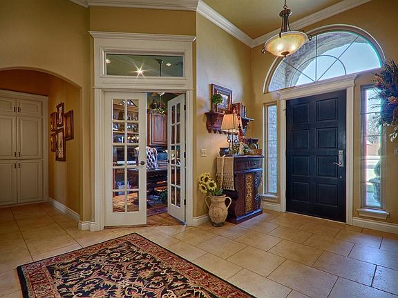 FABULOUS THREE BEDROOM PROPERTY WITH STUDY AND THREE BATHS. THIS PROPERTY FEATURES AN OPEN FLOOR PLAN, WITH FORMAL DINING, KITCHEN WITH AN ISLAND AND DOUBLE OVENS, LARGE BREAKFAST BAR, EATING AREA, PANTRY AND LARGE UTILITY. THE MASTER BEDROOM HAS BATH WITH DOUBLE VANITIES, WHIRLPOOL TUB, SHOWER AND WALK-IN CLOSET. YOU WILL ENJOY ENTERTAINING ON THE OVERSIZED COVERED PATIO WITH OUTDOOR KITCHEN AND FIREPLACE. THE THREE CAR GARAGE HAS AN ABUNDANCE OF BUILT-IN CABINETS WITH STORM SHELTER. THIS HOME SITS ON CORNER LOT WITH CIRCLE DRIVE, A SPRINKLER SYSTEM AND ACCESS TO GOLF COURSE. 2740 SQ FT (MOL) CALL TODAY FOR A PRIVATE SHOWING!