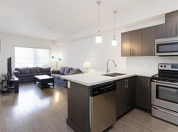 This pet friendly bright and spacious 1-bedroom + den apartment offers 612 sq. ft. of comfortable living space in a prime downtown Maple Ridge location. Situated on the third floor and facing a quiet back lane, this home provides a peaceful retreat while keeping you close to everything the city has to offer. Enjoy the convenience of shops, recreation centres, schools, and transit just steps away. The modern interior features quartz countertops, sleek laminate flooring, an open-concept kitchen, and a large private patio perfect for relaxing or entertaining. For added convenience, this unit includes 1 secured parking space. Key Features: Availability: Now Built: 2015 Unit View: East Parking: 1 spot included Climate Control: Electric heating Laundry: In-suite washer and dryer Kitchen: Stainless steel appliances, built in microwave, open layout Flooring: High quality laminate flooring in living spaces Bedroom/Bathrooms: 1 Bedroom, 1 Den and 1 Bathroom Balcony: City Views/Mountain Views Amenities: Large Entertainment Lounge with Full Kitchen Fitness Centre Outdoor Patio, Garden and Playground Convenient Access to Key Destinations/Transit: Haney Place Mall 5min Valley Fair Mall 8min (walk) Golden Ears Bridge 12min Coquitlam Centre 30min Willowbrook Centre 30min Golden Ears Park 10min Bus Routes/Metro Lines: R5 - 701 - 791 - 741 School Catchments: K-7 Eric Langton Elementary 8-12 Thomas Haney Secondary Tenant Requirements: Term: 1-year minimum, month-to-month thereafter Payment: Monthly rent due on the 1st Documentation: Proof of employment, reference letters, and credit check required Deposit: Security deposit equivalent to half of the first month's rent Policies: No subletting, No smoking, Pet's allowed on owner's approval. Insurance: Tenant insurance required Utilities: Not included (Hydro and Internet) Strata Move-In/Move-Out Fees: $100 non-refundable fee for move-in Contact us today for inquiries or to schedule a viewing. Note: We strive to provide accurate and up-to-date information in our listings. However, we strongly encourage prospective tenants to independently verify all details, including property features, amenities, dimensions, and rental terms, prior to entering into an agreement. Please note that all information is subject to change without notice. Property presented by: Rolan Liu Property Management - 1NECollective Realty