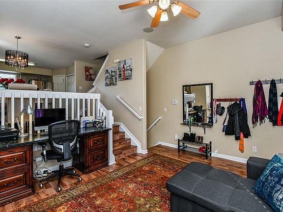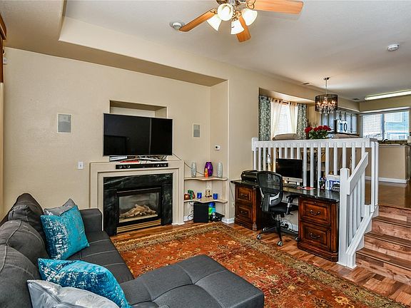 Pottery Barn Perfect!! Don't miss out on this well cared for 2 bedroom 2.5 bathroom town home! Walking in you will notice all of the natural light, gorgeous wood floors, open floor plan, vaulted ceilings and the gas fireplace with custom stone. The updated kitchen has SS appliances, lots of cabinets, back-splash and beautiful granite counters. There is also a half bath on the main level. Continuing upstairs there is a large master compete with an en-suite updated bathroom with a tile shower and granite counters. There is another bedroom as well as a full updated bathroom. This unit has custom paint throughout, new custom carpet, updated light fixtures, surround sound, a water softener as well as a newer water heater. There is a 1 car attached garage. Low HOA dues. Conveniently located to parks, shopping, restaurants and the highway. You don't want to miss out on this wonderful unit!