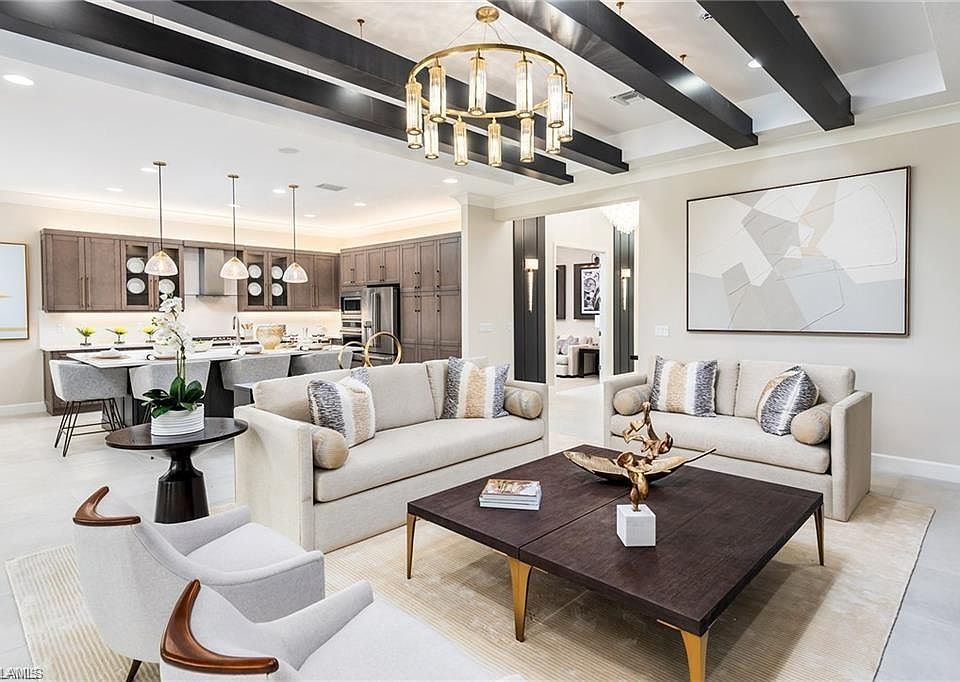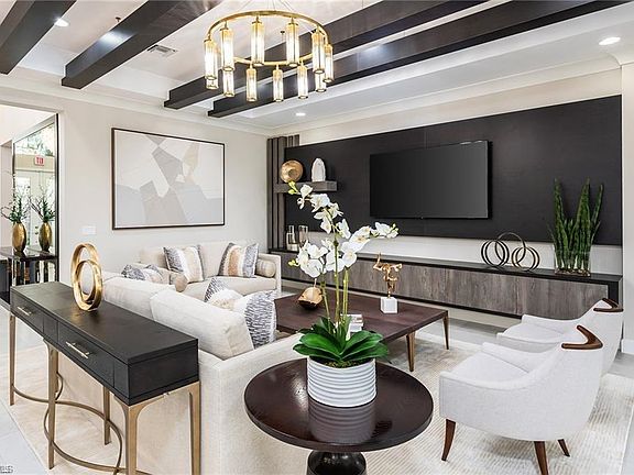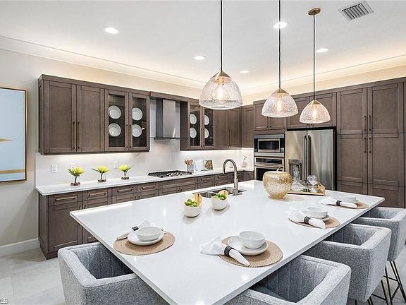 H7403 - New construction available for August / September 2023 on an oversized corner lot with a pool and screen enclosure as well as a summer kitchen and gas pre-plumb on patio! This "Sunrise" home offers impact resistant windows throughout and has 3 bedrooms, a den, 3 ½ baths, and a 3-car garage with a 2ft extension, an open kitchen with stainless steel GE appliances, soft-close cabinets with dovetail drawers and quartz countertops. The master bedroom offers a coffered ceiling, spacious his and her closets and a master bath with dual sinks. Valencia Trails is located just minutes away from shopping and dining and provides a new standard of 55 plus living by offering an exciting vacation-inspired lifestyle that rivals the finest resorts. The opulent 42,000 sq. ft. Clubhouse and Lifestyle Complex offers hundreds of exciting events including Broadway style shows, matinees, cocktail parties and galas. A full-time, on-site lifestyle staff ensures that there is something for everyone to enjoy. Note: Photos are the Sunrise Model, not the actual home.