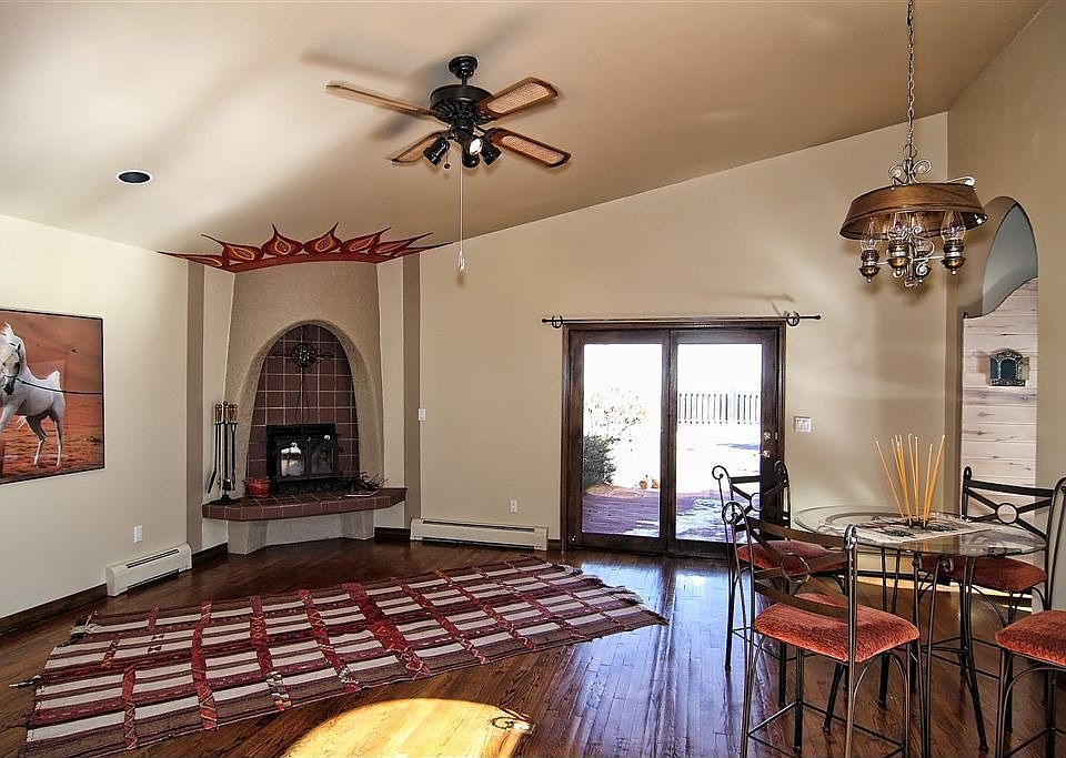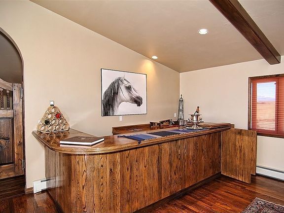 Architect designed SW style ranch home perfectly nestled into the hillside for privacy and mountain views on a 2.5 acre lot, In the center of this home there is a 1,500 sf courtyard completely private! True main level living with over 3,600 sf on the main level. Large windows surround you as you enjoy the huge room sizes including a 41' x 19' great room that boasts a fireplace, full wet bar and built-in buffet counter. The gourmet kitchen features an island counter bar, all-new, never used Jenn-Air appliances plus a huge butler pantry. Great study with beautiful, hand carved doors, built-in bookshelves and file cabinets and access to the private covered deck. Relax in your spacious master suite including a 5 piece bathroom and walk-in closet. The indoor tiled built-in hot tub area is a wonderful place to overlook the courtyard. Other amenities and upgrades include baseboard water heat with solar assisted back-up, commercial grade fire rated 2" rubber roof + cement tile, Marvin windows, 2 fireplaces, vaulted ceilings, rustic beams and several sets of French doors to the courtyard. This home is an Artists dream with so much natural light and wall space to work with. Truly a quality built home for the discriminating buyer looking for a unique historic property.