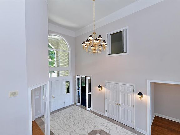 Enjoy beautiful views on the lake! This five bedroom brick and cedar home is nestled behind towering trees. Soaring two-story marble entry. Great office with two story library and rich cherry stained wood finishes. Formal dining room. Lovely two story living room, overlooks private pool and the glistening lake. Large kitchen with massive center island, spacious breakfast area, and hearth all with rich hardwoods. Enjoy fantastic views from main-level master with private access to trex deck overlooking the water and pool. Three generous bedrooms upstairs all have private en suites. Large basement with additional living area, fireplace, wet bar, fifth bedroom, additional flex rooms and storage. Large pool and dock for family fun!