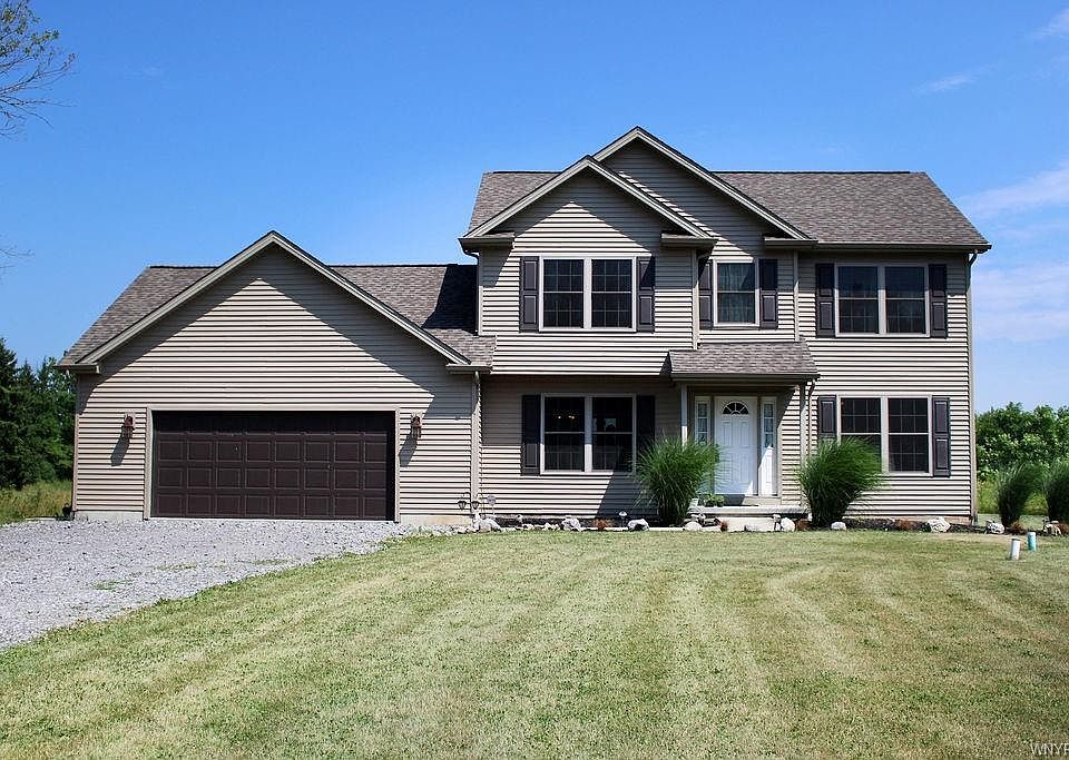 Come check out this very tastefully decorated 4 bedroom 2 1/2 bath Colonial built in 2016 situated on 11.5 acres. This prime location is less than 15 minutes to Lancaster, Clarence, thruways, shopping and many restaurants. The first floor boasts a huge eat in kitchen/dinette area with quality Kraft-maid cabinetry, also a formal dining room that could be a perfect den/office, large great room with gas fireplace, half bath and first floor laundry. The second floor has large master suite with master bath and walk in closet, 3 additional bedrooms and main bathroom. This location brings the feel of being in the country but still close to all the conveniences of the city. The large 2 1/2 car garage is set up with a drive thru second garage door and an additional entrance to the basement. With this location and 11.5 acres perfect for snowmobiling, hiking and many more recreational activities. Tax records show Akron schools but this location is on the Alden school boundary line so Alden schools may be a possibility.