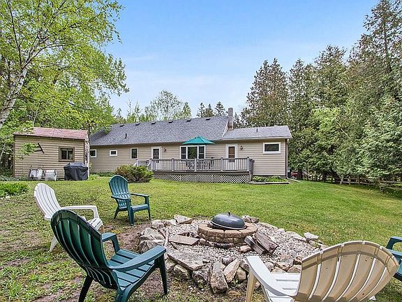 This lovely home lives large, with 3 bedrooms, 2 baths and an open floor plan. Many outstanding features, including the fact that it's a short walk from growing downtown Ellison Bay and all its charms, including casual and fine dining, shopping, swimming beach, public tennis, several parks and public marina. All of this on a manicured, wooded lot with a large, private backyard, footsteps from Fitzgerald Park and the Clearing School, plus close to Door Bluff Park and Garrett Bay park/kayak launch. The large storage shed is perfect for storing your bikes, kayaks and more, plus partial basement for more storage. Offered fully furnished and appointed, move-in ready, it's the quintessential Door County getaway or year-round home--call today.