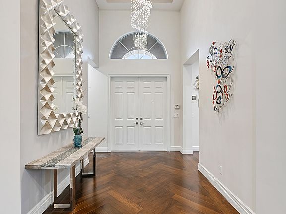 Model perfect Carlyle model (3/3.1+Club Room+3cg) on magnificent private pie-shaped lakefront lot with trees behind.This beautifully appointed home features impact windows,Generac whole house generator,motorized Defender hurricane screen,central vac,Brazilian walnut engineered floors throughout (porcelain tile in kitchen),decorator light fixtures and window treatments(motorized solar shades,pirouettes,drapes),hi-hats,fans,designer built-ins,outfitted closets,wet bar,upgraded baths and more!The gourmet kitchen has wood cabinets,quartz countertops with full height and glass lite backsplash,upgraded stainless steel appliances,center island,snack bar and separate breakfast area.Luxurious master suite.Great backyard-1600 sq ft travertine patio has huge birdcage with picture frame screen. Additional features include fenced yard, four zone Sonos audio system with speakers installed, reverse osmosis water filtration system, upgraded cooking island in kitchen with vegetable sink and filtered hot water dispenser, custom pull-out drawers throughout house, attic storage with drop down ladder.