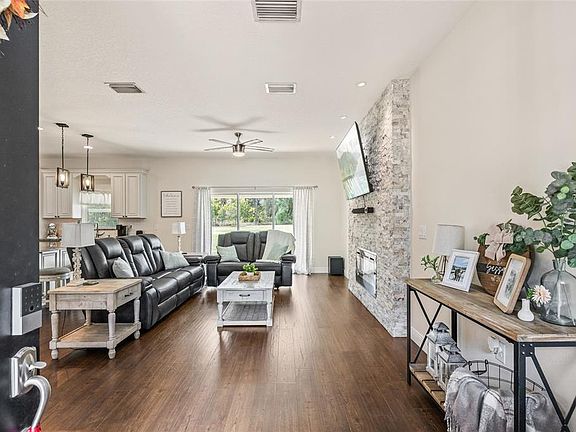 This custom build is not your typical new construction home. Built in 2020 with elevated finishes, this 3 bedroom, 2 bathroom property sits on a corner .46-acre lot and features an open layout filled with natural light. Highlights include high-end finishes, recessed lighting, double 8ft entry doors, a custom electric fireplace wall, and a split floor plan. Laminate flooring runs through the main areas and master bedroom, with tile in the bathrooms. The two additional bedrooms are spacious and feature fresh carpet. The kitchen offers raised panel cabinets with bronze hardware and soft-close hinges, granite countertops, subway tile backsplash, stainless steel appliances, and a large island with additional storage and seating. A formal dining space is located just off the kitchen while still maintaining an open feel. The master suite includes his and hers walk-in closets, spacious dual vanities with granite & soft-close cabinets, an oversized walk-in shower, and a garden tub. The bathroom features continuous tile from floor to wall, giving the space an elegant, cohesive look. The fully fenced lot is completely cleared and sodded, equipped with an irrigation system, and the flower beds have been recently updated for fresh curb appeal. Schedule your showing today as you won’t find many newer homes that combine this level of quality finishes with thoughtful design.