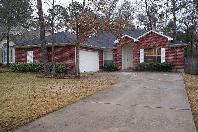 Just minutes from Lake Conroe.Huge backyard backing up to a forest.Nice multi-level patio with outdoor speakers. 4 Bedrooms or 3 Bedrooms with a study. Formal dining. Room. Big Island Kitchen.Beautiful wood flooring in Living and Dining Room, Ceramic Tile in Entry Way.Gas Fireplace,Split Bedroom Plan.Side entry garage,Dog Kennel in backyard.Completely Fenced Yard, Side Entry Garage.Neighborhood lake and park.