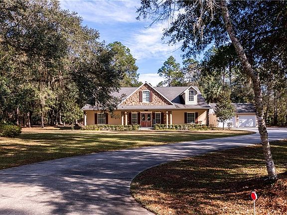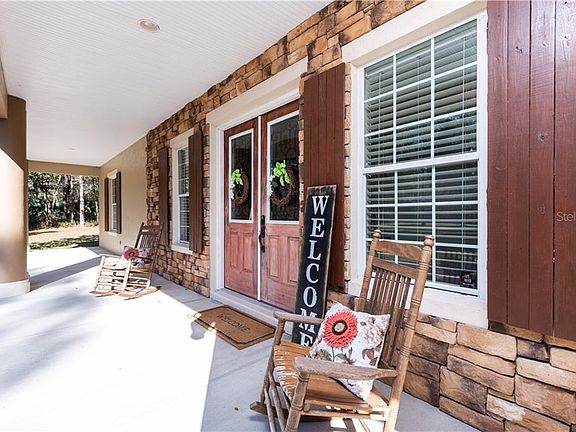 A sprawling Live Oak welcomes you to this charming country home. Large foyer leads you into a breathtaking great room with 20ft ceilings and a beautiful wood burning fireplace. As you turn the corner you enter the spacious gourmet chefs kitchen that features stainless steel commercial sized refrigerator/ freezer and double ovens. Host large gatherings around the 10ft island while looking out the windows to the picturesque view. Unwind in the extra large master suit with double walk in closets. Master bath provides the opportunity for relaxing in a large jetted tub, walk in shower, and twin vanities. Bedroom 2 and 3 feature walk in closets. Bathrooms 2 and 3 have a deep soaking tub/ shower. 10ft ceilings throughout the rest of the home. Moving outside enjoy the country views from either the front porch or back porch. Bring your toys and store them under the 1600 sqft pole barn or in the extra large garage.