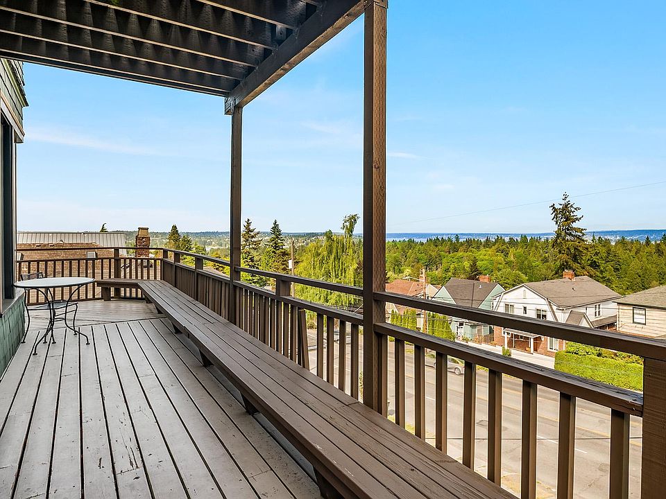PROPERTY DESCRIPTION: Stately 7 bedroom 4.5 bath home located on a quiet street with private outdoor space, tons of parking, and proximity to all that Seattle has to offer. The entry level of this home is the main entertaining floor. This floor features a large, light-filled living room with a unique decorative fireplace, and sweeping views of the lake and mountains. A wrap around porch directly outside the living room takes in breathtaking views. Large dining area perfect for accommodating large groups. Just outside the French doors from the dining area is your urban oasis: an outdoor patio with space for a BBQ, lots of dining space, and a small water feature. The kitchen is modern, with stainless steel appliances and a gas stove. The top floor features the master suite with a walk-in closet and en suite bathroom. The master suite offers sweeping views of the lake and mountains. Two additional bedrooms are upstairs, and share a full bathroom. One level below the entertaining floor is a floor with a second large social space. This floor also includes a second full sized kitchen, laundry facilities, a bedroom, and a full bathroom. One more flight down is a floor with 3 bedrooms and a full bathroom. This home includes garage parking for one car (and plentiful free street parking for additional vehicles), DirecTV, and high speed Wifi.