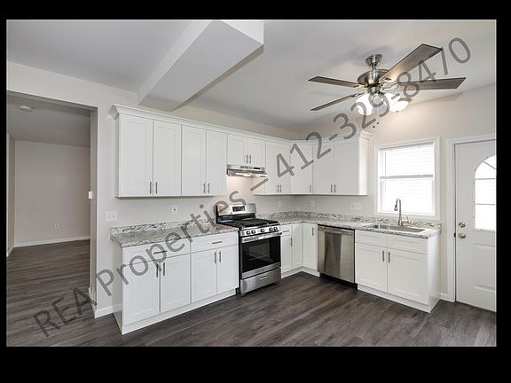 Beautifully renovated 3 bedroom, 1.5 bath house in friendly & quiet Conway neighborhood. Remodel includes all new kitchen, bathrooms, flooring, roof and HVAC. Large, beautiful kitchen with abundant cabinet and counter space and new stainless steel appliances. First floor open layout with 9 foot ceilings. Lots of natural light. Spacious master bath with tall ceilings and laundry hook ups. Private fenced in yard. Covered front porch. Quick access to Route 65 and only 15 minutes to Beaver Valley Mall. Renter responsible for all utilities. Background and credit check required. Pets on approval. No smoking.