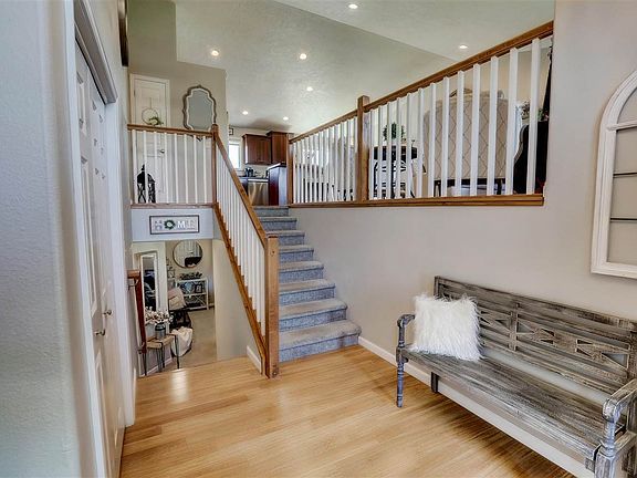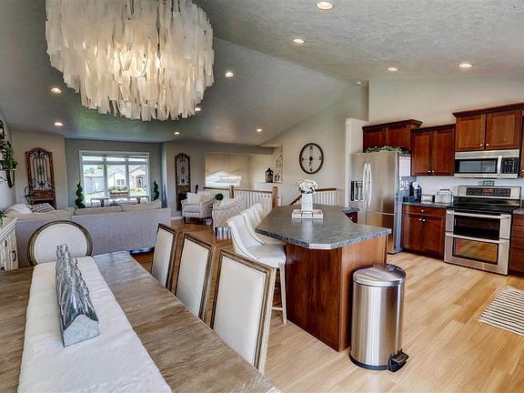 Show Stopper! Gorgeous home located on a cul de sac in the desirable neighborhood of John Hoeven Elementary School. Spacious foyer upon entry, vaulted ceilings as you head to the upper living level and an open floor plan. Kitchen has an updated refrigerator and dishwasher, a new sink and faucet, and there is an oversized island with great seating space for up to 5. Laminate flooring through out the main level. Off the kitchen and dining you have convenient access to the back yard from the deck. Lots of good sunlight in the living and dining area with the large window exposure. Down the hall are thee of the five bedrooms. The master bedroom is spacious with a large closet and a full bath en suite. The other two bedrooms are nice size with a full bathroom to share. All bathrooms have new toilets and sink faucets. Downstairs boasts a huge daylight living area with an electric fireplace. Laundry is conveniently located here, and two more large bedrooms with great closet space. Another full bathroom services the basement living area. Outside you have a manicured lawn and landscaping. The back yard is enclosed with a white maintenance free fence, and there is a play set, sandbox and volleyball net and the front has an adjustable high grade basketball hoop, all items transfer with the sale. Pet free home.