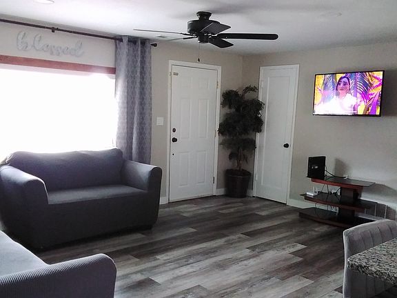 Remodeled home with appliances included (except dryer and washer), not furniture included. Front and back yard updated. Close to schools and stores. Great neighborhood. Owner pays for water, gas, and electricity. Lease duration is for one year. Owner is resposible for maintenance.