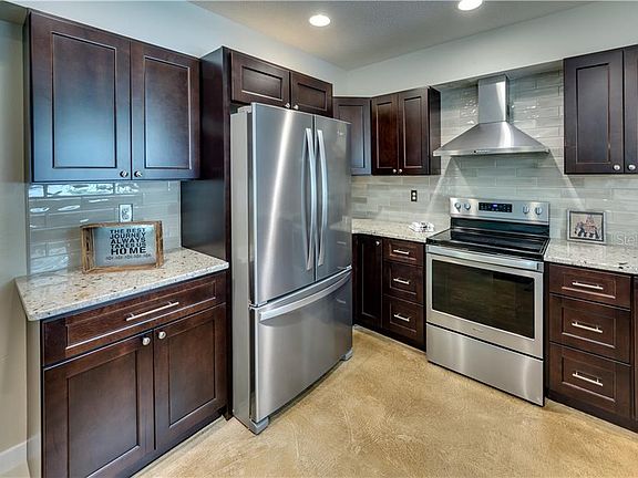 Outstanding, updated, three bedroom, two bath Northwest Bradenton pool home in one of Manatee County's top tier neighborhoods and locations! This home features a brand new (2019) kitchen including stainless appliances, solid wood, soft-close cabinets and drawers, new granite countertops, and new lighting. Home interior and exterior painted in 2023, new master bath (2017), second bathroom also updated, cement floors re-finished with new baseboards and trim (2015), new ceiling fans in living areas and bedrooms; new pool marcite, decking and new pool cage (2015). The master bedroom is spacious and has multiple closets. You'll also enjoy a great view of ponds from both the home's front and backsides. The Sunset Estates neighborhood is close to schools, restaurants, medical facilities, shopping, Robinson Preserve, DeSoto National Monument, and our awesome Gulf beaches. Be sure to put this home at the top of your list!
