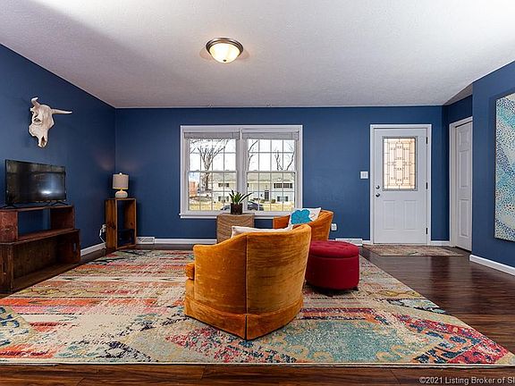 A mid-century, very modern ranch! Totally renovated in 2017 from top to bottom; the designers removed walls to create a sunny living room and a great room that combines a family room with a fireplace, dining area and kitchen. So much better! The new finishes include caramel tone cabinetry, complementary granite counter tops, and bamboo wood flooring. The hard surfaces look and feel fresh and are oh so easy to take care of. Carpet in the bedrooms warms them up. The bathrooms also shine with tile floors and surrounds and a clever multi-level vanity in the hall bath. The gigantic unfinished basement has been sprayed out in black and is ready to finish; or use it like these sellers do as casual living and creative space with a big fireplace. The fenced yard, unique patio, and new landscaping are ready for your post pandemic parties! New windows, new garage door, all new interior and exterior doors are all part of the renovation goodies that make this house a home. The location is great. A short bike ride to the Ohio River Greenway and youre on your way to Louisville, and a short car ride to the bridges make an easy exit to all your destinations. A home warranty is included.