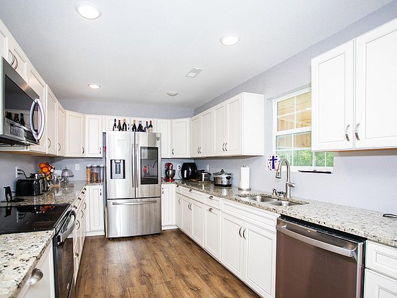 This beautiful home has been completely remodeled as well as an addition added. The spacious kitchen includes lots of cabinet space, granite countertops, and stainless-steel appliances. All bedrooms include a walk-in closet. The primary bedroom has a nice ensuite bathroom with double sinks, a makeup vanity, tiled floors, A huge tiled shower, and several cabinets. Property also includes a detached garage with electric.