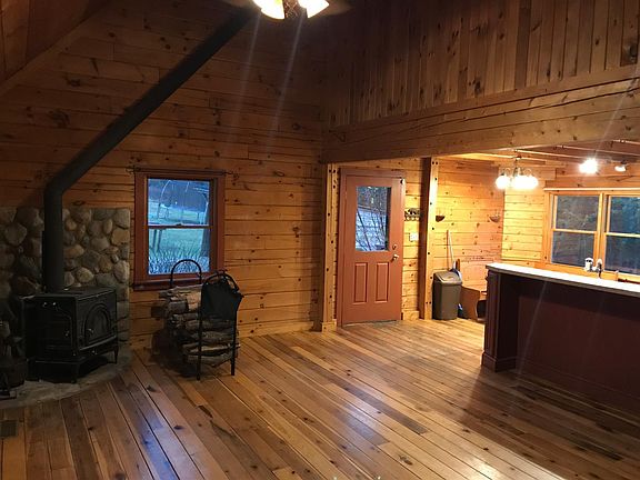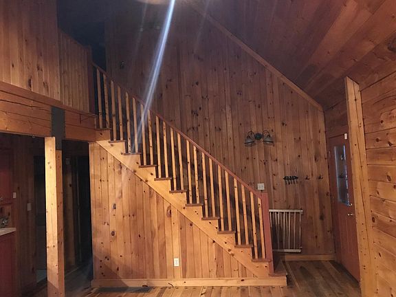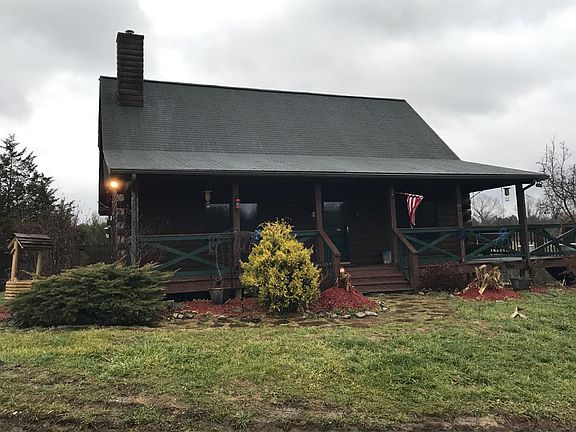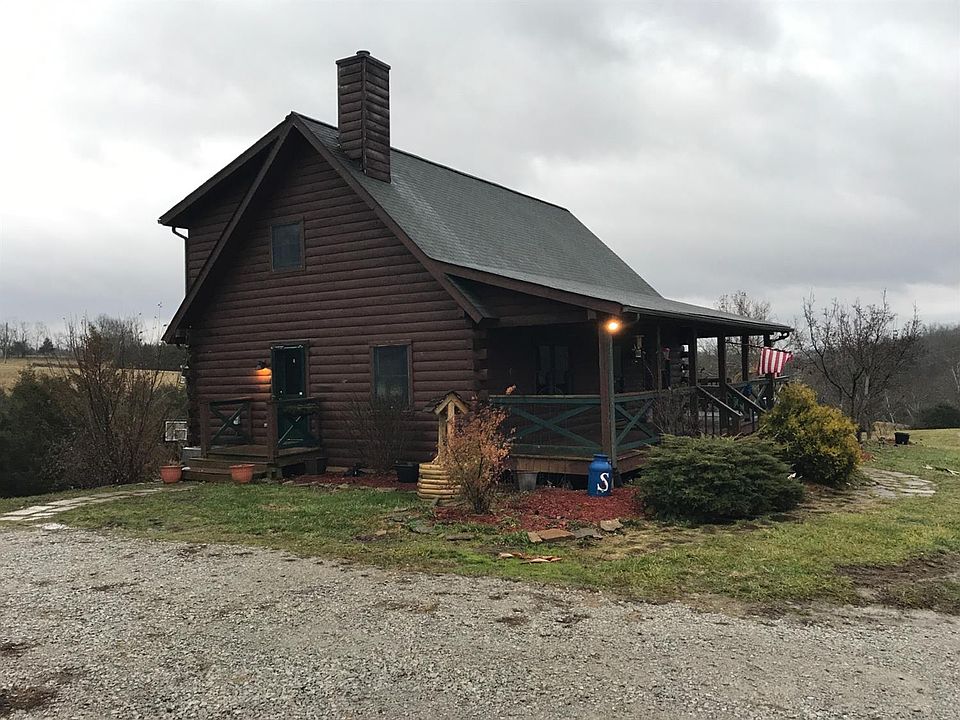 Searching for that dream home with Peace and Tranquility! You'll find it here with this charming 1 story log cabin sitting on top of a ridge surrounded by 6.9 acres. The Rustic covered porch allows for very nice scenic views. Beautiful Hardwood Floors accent the upper level as well as the great room and complement the barn red chocolate grazed kitchen cabinets. This cabin features an open floor plan with an eat in kitchen, master bedroom and full bath on the main level, 2 bedrooms and a full bath on the upper level, Bedroom, family or recreational room and full bath with walkout basement onto a large concrete patio on the lower level that's perfect for those family barbecues. This beautiful country charm won't last, don't miss your chance to own this property!
