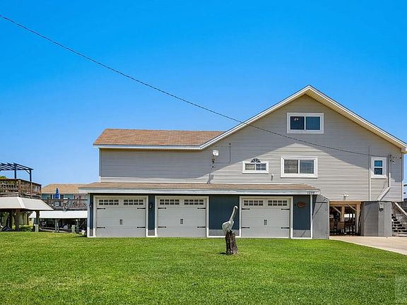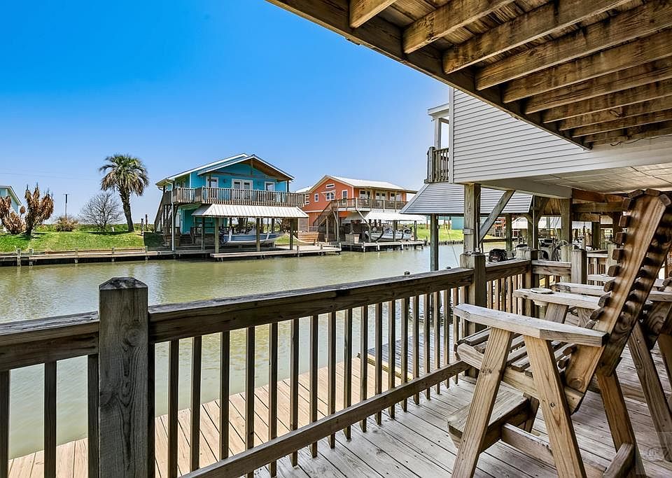 Scenic Water Views! This single story 3-bedroom home sits on the canal with a bulkhead, boatlift and cargo lift. You will enjoy the neutral paint palette, laminate floors, oversized windows, and an open concept floorplan; perfect for entertaining. The kitchen boasts butcher-block counters, Center Island, and ample cabinet and counter space. The spacious primary suite boasts a sitting area, access to the deck and an en-suite bath with dual vanities, Whirlpool bathtub and separate walk-in shower. There is an additional bedroom and bathroom on the first floor and an additional bedroom and bath upstairs. The home is on stilts and the downstairs/garage has been converted and includes a kitchen, bar, laundry room and 1/2 bath. The four garage doors allow the ocean breeze to flow through and is the perfect place to enjoy your day. Home is bein
