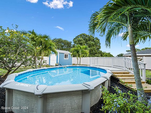 Meticulously maintained, fully fenced, .37 of an acre corner lot home located in the heart of Palm Bay. For peace of mind, all major ticket items are newer. Roof '24, AC '21 & HWH '22. The floorplan is open & cozy. It's perfect for entertaining or just enjoying a quiet night at home. There's an abundance of cabinet & counter space in the kitchen. Just off the kitchen is the indoor laundry room which you'll find even more storage in (as does the garage). The interior was just freshly painted. The bedrooms are all generous in size. A huge perk of the house is the massive screened in patio in the back. Step right outside into your own private paradise. The beautifully landscaped backyard transports you to a world of serenity, far removed from the hustle and bustle of city life. With lush greenery, a serene above ground pool, & an open paver area under the stars, this outdoor space is perfect for unwinding, entertaining, or simply enjoying nature. All upgrades listed in document section