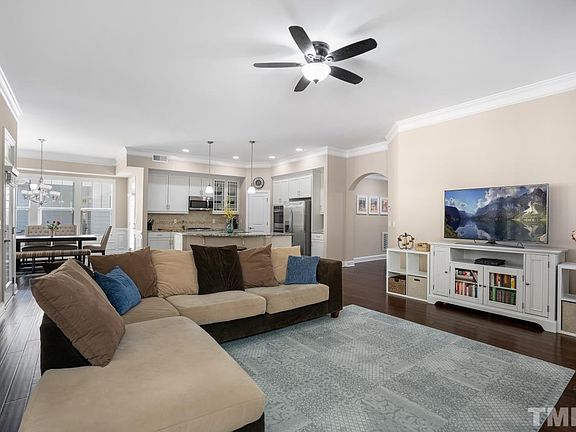 Rare 1 story Ranch floor plan w/ screen porch on .18 acre fenced lot in Kitts Creek. Check out the upgrades: plank style hardwood floors,Open Concept Kitchen w nice white cabinets, granite countertops,SS Appliances- gas cooktop & double oven & 10 foot ceilings. Enormous Master suite w/ 2 walk- in closets, granite topped vanity, tile shower & garden tub. Spacious Family Rm w FP. Rear entry 2 car garage. clubhouse, pool & gym. Lawn maintenance included. Short drive to RTP, DT Durham & Raleigh.Great schools.