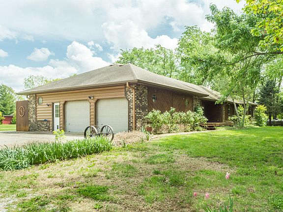 Great 4 BR 2 BA home, sitting on 1.9 acres, features large kitchen/dining combo with granite counters, stainless appliances, gas cook top, lots of cabinets, wood flooring. Dining area leads out to a covered deck/patio which would be great for entertaining. Master BR has lots of space with door leading to private deck with hot tub. While relaxing on deck, be sure and turn on the water feature. Master BA has huge w/i tiled shower, w/i closet. All new windows, siding, guttering & soffit. Concrete fire pit in back, lots of mature trees. Garage is oversized with work bench & sink. Must see to appreciate all the nice features of this property.