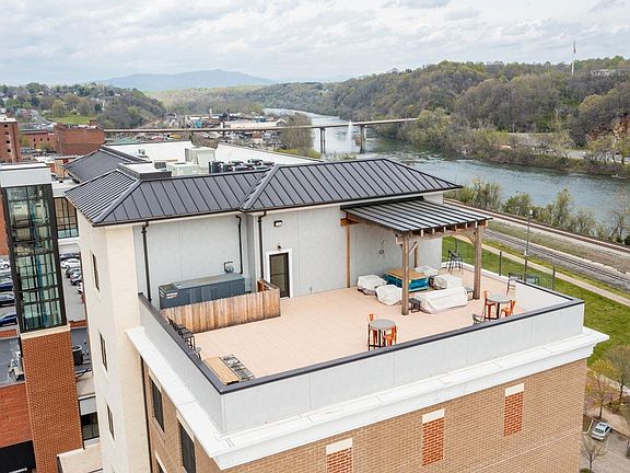 Amazing opportunity to own this beautiful & income producing luxury condo in the heart of downtown Lynchburg! Located at the Parkview on the Bluff, this condo offers wonderful amenities including an exclusive rooftop terrace for resident owners, walking distance to lots of restaurants and shopping, and the ability to step right out onto the bluff walk from your back door! Enjoy dining and drinks at the roof top bar or some great Italian food from Fratelli Italian Kitchen located inside the building. Short term and long term welcome or make this gem your very own primary residence or vacation spot for yourself. The opportunities are endless, and the luxuries inside will not disappoint. Unit is being sold furnished and wont last long! Come enjoy Lynchburg at its finest with your very own
