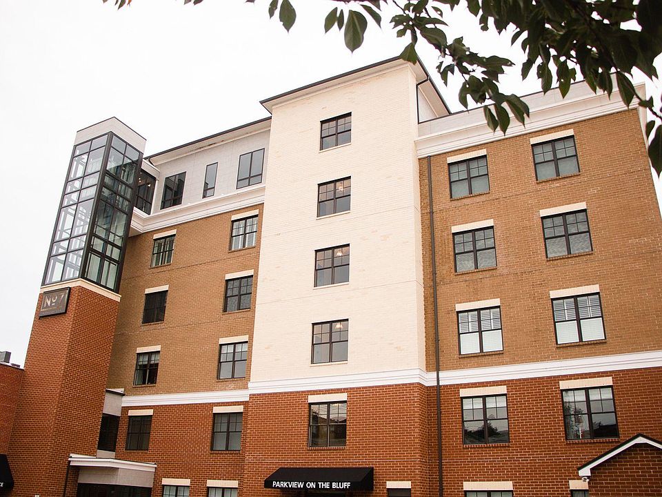 Parkview On The Bluff is downtown Lynchburg's newest premier luxury condominium located on the Bluff Walk, convenient to shops, restaurants, hiking trails and downtown activities. It is not just a condominium but a lifestyle! This spacious 3rd floor residence with soaring 10ft ceilings features a . "window wall" with double sliding glass doors opening to a large private balcony with commanding views of the James River, Riverfront Park and the Blue Ridge Mountains. Two bedrooms, two full baths. The open concept floorplan features kitchen equipped with a large center island, maple cabinetry, granite countertops and full stainless steel appliance package with chef's style gas range. The Living/dining room features a linear electric fireplace and The master bedroom opens to a huge walk-in closet and a full bath with a double sink vanity, walk-in shower and over-sized soaker tub. The second bedroom also features access to a full bath with custom built cabinets. The laundry room comes with washer/dryer and custom maple cabinetry offering plenty of storage space. Parkview on the Bluff has a private elevator reserved for residents with exclusive access to a rooftop terrace with panoramic views of Lynchburg and beyond. Fratelli Italian Kitchen & Wine Bar and No. 7 Rooftop Bar are conveniently located within the building. Access to this building is passcode protected and this residence comes with 1 reserved on-site parking space. Additional monthly parking rental located 1 block away. Do not miss this modern downtown experience!!