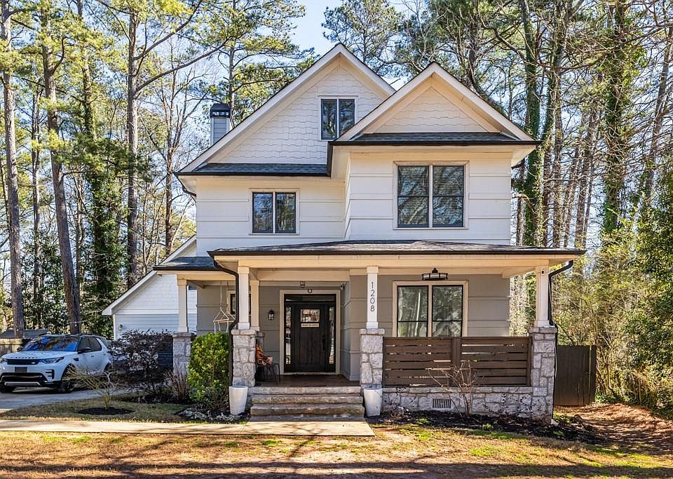 Newer construction on the sweetest street in Midway Woods. A spacious 4 bedroom, 3 bathroom with what this family uses as a GIANT fifth bedroom on the third floor. This loft has four built in beds, built in shelves and custom desks and TONS of attic storage. The main floor has a private bedroom with reclaimed wood walls and a full bath, an open-concept living room with a fireplace and dining room. Recently updated kitchen with a Wolf stove, brand new refridgerator, new tile, reclaimed wood in kitchen and on mantel, Farrow and Ball paint and fantastic attention to detail from front to back. The second floor has a spacious primary bedroom and bathroom and two additional bedrooms and a full bath. A flex space between the bedrooms adds another level of flow. A deep, level, private backyard with extended back deck, a level driveway and flat front yard, garden beds and blueberry bushes. Updated HVAC with extra filtration and a new humidifier. Entire house water filter and extra 240 volt charger in full 2 car-garage with room to expand above. This home lives SO very smart. Quiet street but only blocks away from schools (Zone 1 for Museum Charter), Legacy Park, and a quick bike ride to Decatur, such easy access to restaurants and all that Decatur has to offer.