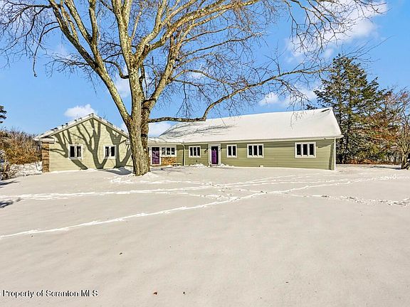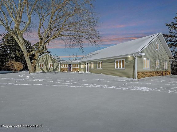 This exceptional property truly has it all, set on 4.9 breathtaking acres with sweeping views of the Country Club of Scranton and its iconic clubhouse--pure paradise. Located in a sought-after neighborhood with close proximity to all Abington Heights schools, the home offers the rare combination of privacy and convenience.Inside, you'll find a chef's kitchen featuring high-end cabinetry and quartz countertops, hardwood floors throughout the first floor, and an ideal layout for entertaining. The home also offers a large walk-up attic with tremendous potential to be finished for additional living space.The expansive finished lower level includes a half bath, kitchenette, and a stunning fireplace, with walk-out access to a gorgeous flagstone patio complete with a beautiful fountain and even more spectacular views.As an added bonus, the property also features a two-story barn, offering endless possibilities.