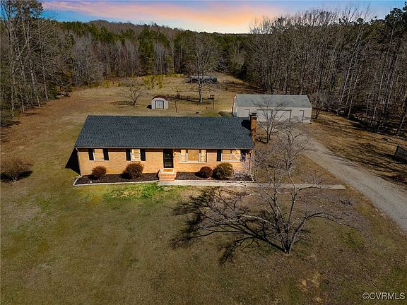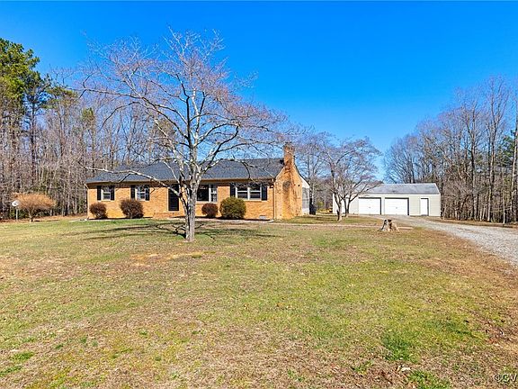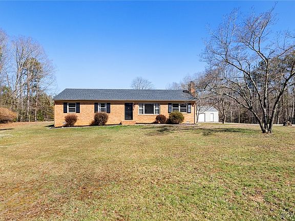 Stunning Ranch Home in Powhatan! Country living at its finest, enjoy over 10 acres of this expansive lot! Welcome home to this 3 bedroom, 1 and a half bath residence with 1,444 square feet of cozy living space. This darling brick rancher exudes curb-appeal with beautiful landscaping and charming front stoop. Welcome inside to a spacious family room with LVP flooring, tons of natural light and bar-seating with views from kitchen. Flow effortlessly through dining area, perfect for entertaining family and friends. Adjacent kitchen is fully equipped with stainless steel appliances, beautifully painted cabinetry and subway tile backsplash. Cozy den is a fabulous additional living space with gas fireplace adorned with brick surround and rustic wood mantle. Ultra-modern half bath flaunts contemporary vanity with stunning hardware, decorative molding and wallpaper. Laundry room features built-in cabinetry for extra storage needs and also grants access to screened-in porch. Home offers a private primary bedroom with barn-door entrance to oversized closet. Additional two bedrooms each feature large closets, LVP flooring and heaps of natural light. Hall bath is a stunner flaunting custom tile flooring, oversized vanity and tub/shower with tile surround. Satisfy all your storage needs in pull-down attic! Don't forget to take a peek at the fabulous outdoor haven! Screened-in porch allows you to relax and take in the scenic views of nature all year round, and large detached 2 car garage with plenty of work space! Enjoy the privacy and tranquility of rural life while still being within a convenient drive to local amenities! Whether you're looking for a peaceful retreat, a hobby farm or just room to roam, this property is a rare find!