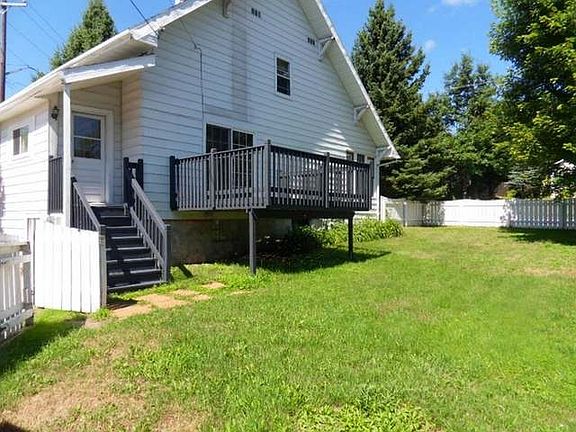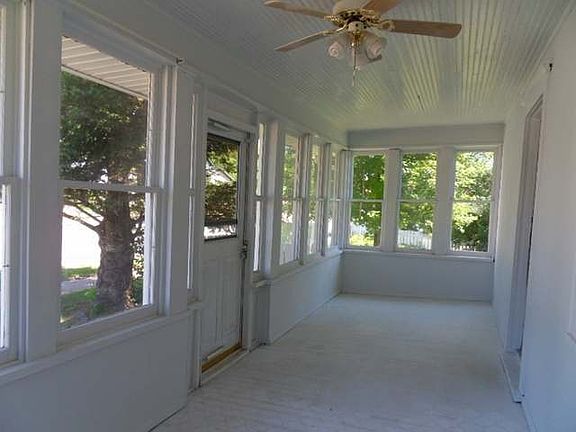 AT THIS PRICE ITS CHEAPER TO OWN THIS HOUSE THAN TO RENT! AND YOU MIGHT QUALIFY FOR A 100% LOAN THROUGH THE USDA DIRECT LOAN PROGRAM. This spacious 2 bedroom, 1.5 bath two story has been updated and has many wonderful amenities including a sun porch across the front of the house, patio doors off the kitchen leading to a deck overlooking the fenced in yard,a detached garage, storage shed and a clean basement with laminate and carpeted floors and an interior and exterior entry. The main level of the home has a 7 x 23 sun room, enclosed porch off the back of the house, kitchen, half bath, living room and dining room. The living room has an open stairway leading to the second floor which has 2 nice sized bedrooms and large bathroom. The owner has kept this home well maintained and recently installed a new furnace.You will not find a cleaner home in this price range.