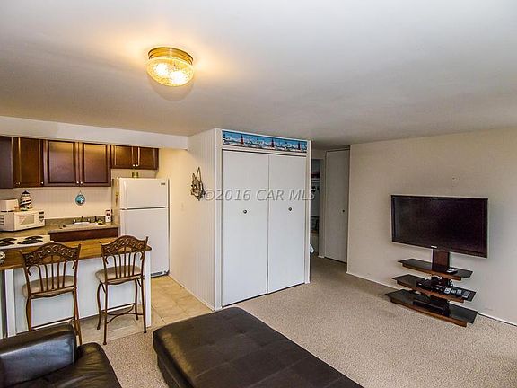 GREAT Ocean City, downtown location! Just a few blocks from the beach, boardwalk and the world famous White Marlin Tournament! Offering 1st floor convenience, open floor plan, LARGE bedroom. Updated kitchen with tile floor, wainscot trimmed walls, dark ''cherry'' cabinets, butcher block bar, updated bath with new vanity and custom tile floor and walk-in shower. SOLD FURNISHED! Community pool and on-site laundry room.