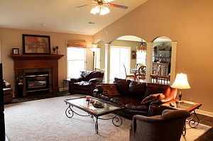 Entering the home through the front door, you find yourself in a large foyer area with wonderful slate tile and to your right the closet. Walking under the arch throughway, you find yourself in the heart of the home; its massive living room. The slate tile continues, leading up to a central fireplace with a large stately wood mantle and gas fireplace insert flanked by two large windows. The room is lovely with upgraded ceiling fan, beautiful columns, and arched throughways. The central throughway leads to the Eat in kitchen. This eat in kitchen feels more like a true formal dining room with tray ceilings and a fabulous central light fixture in rubbed bronze. It also includes sliding glass doors leading to a fabulous stone patio. Walking through into the kitchen area, you find a lovely updated kitchen with custom cabinets, a tile back splash, and a light central fixture over the large island.To the left of the central living room, you will find a long hallway leading to the homes three bedrooms. The first door on your left leads to a spacious secondary bedroom with a massive walk-in closet. The fabulous feature of this home is that every single bedroom has large walk-in closets, making every room feel like a master. The second door to your left also leads to a secondary bedroom, this one slightly larger than the last. The hall turns, leading to the homes full hall bath. The full hall bath includes custom cabinets, slate tile floors, glass sliding door shower, and double vanities with a massive mirror.At the end of the hall you find yourself in the master bedroom. The master bedroom features a marble lined gas insert fireplace with wood mantle. This fabulous room features a ceiling fan, tray ceilings, and access to a fabulous stone patio that looks out over the lake. The master bedroom also includes a walk-in closet with lots of great built-ins, and a beautiful master bath with enough room to add a massive walk in shower or jetted tub.The homes backyard is a true treasure, with a fabulous stone patio nestled into the homes ample garden space. The patio features stepping stones connecting it to the master bedroom's own private back patio, which includes a jetted hot tub. Large stones steps down through the garden lead into the back grassy lawn, which ends in a walking path leading to the lake. The view of the lake is truly breathtaking, and can be enjoyed from both patios with unobstructed views. The walking path leading to the lake is lined with solar lights, creating a well-lit atmosphere for those midnight strolls.To see it for yourself, call Susan Today!Directions: South on Forum into The Highlands to right on Elsdon Dr.For more information, or to receive a free, color brochure complete with floorplans & details,call Susan Horak at (573) 876-2849 or (573) 447-2146, or email her at Susan@SusanHorak.com
