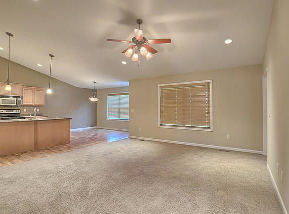 Beautiful four bedroom ranch in popular Fieldstone Subdivision is move-in ready. Open concept living thanks to the eat-in kitchen/living room combination with vaulted ceiling. The eat-in kitchen features maple cabinets, hardwood floors and access to the covered patio overlooking an open field. Master bedroom with cathedral ceiling, walk-in closet and private bath with dual vanities. The full basement with 8'ceilings offers a huge rec/family room, kitchenette, fourth bedroom and full bath plus plenty of storage space. 2 car garage offers extra storage space as well.