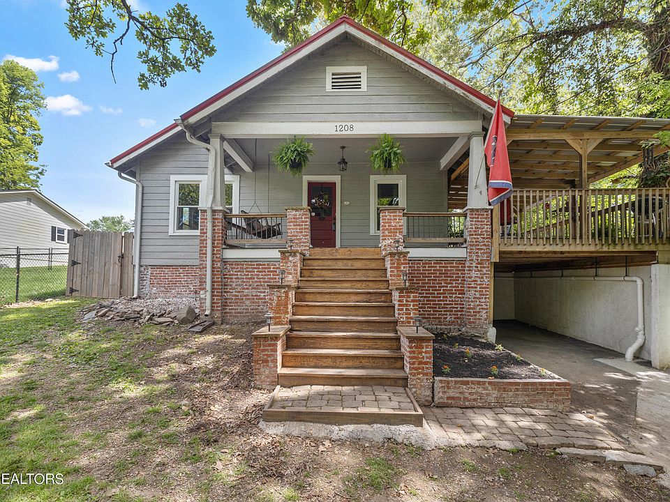 a cozy backyard with a firepit and garden area, a fenced backyard area, and a carport, metal roof, and dugout basement area perfect for storage or projects. Swing on the on the generous front porch, or grill on the side covered deck-this home has tons of entertaining potential! With so much preserved character, under 300k, this one is a rare find, and perfect potential for some sweat equity! Buyer to verify all information.