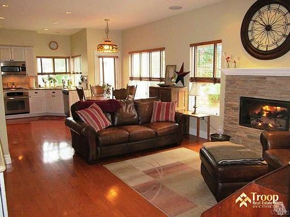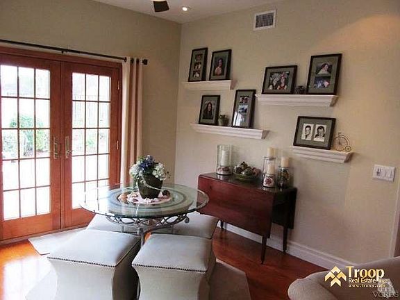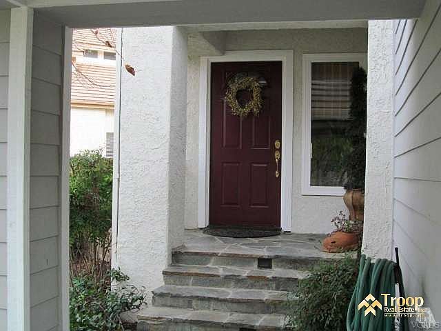 Beautifully Upgraded 4 Bedroom, 3 Bath home w/ nearly 2,000 sq ft. home. Fabulous location, with no one on one side or in back; large pie shape lot. Flagstone walkway welcomes you to this exceptional home. Downstairs remodeled by HGTV in 2007. Upgrades include Dual Pane Windows; Recessed Lighting w/Digital Switches; Dual Zone Heating/Air Conditioning;5'' Baseboards Downstairs; Hardwood Floors in Family Room, plus Built-in Custom Entertainment Center, Cozy Fireplace & Surround Sound. Living Room is Elegant, & adjacent Dining area has 2 sets of French Doors, 2'' blinds and an Invisible' Screen on Back Slider. Kitchen also remodeled- Granite Counters w/Tumbled stone backsplash, Stainless Steel Appliances, Breakfast Area, pull out cabinetry and opens to Family Room. Guest Bathroom has Iron Tub w/ glass enclosure & tile flooring. Lrg Master Bedroom w/Vaulted Ceilings, Mirrored Closet Doors. Finished Garage cabinets & storage, roll up door w/window + washer/dryer hookups. NO HOA dues.