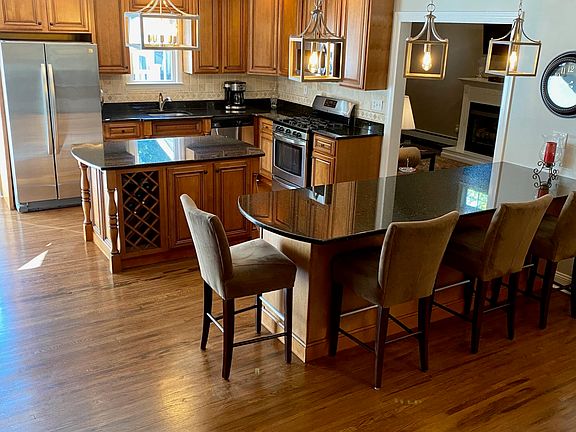 - RoomKitchenFeatures: Center Island, Granite/Stone Counter, Sliding Door, Floor - Wood