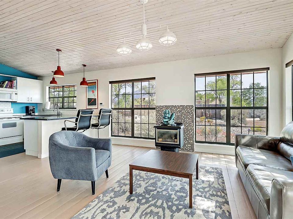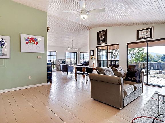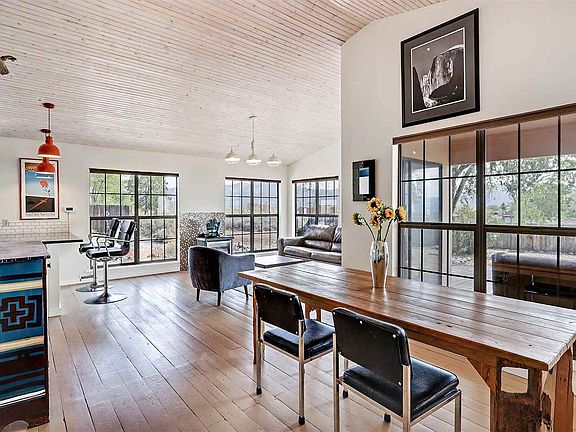 Sunny 3BD/3BA home with unique Taos style and amazing views. Open concept living area is all windows, providing panoramic views overlooking the Taos Valley. Bonus rec room with its own bathroom makes a great studio space or additional family room. Covered back porch overlooking huge fenced courtyard is great for entertaining, or just relaxing and taking in the views. Property borders Taos Pueblo land, with an expansive and private feeling, and yet is 20 mins to Taos Ski Valley and 6 mins to Town.