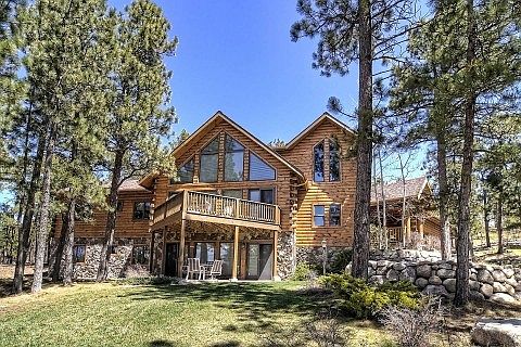 Spectacular Custom Log Home in the forest Mountain log home living at its finest on over 1 acre of land Four bedroom/ three bath with loft and tiered theatre room Newly remodeled (2020) open concept kitchen with new appliances. Granite countertops. Apron sink with touch faucet. Gas stove. New cabinetry with soft close and pull out drawers. Kitchen opens to Great room with mountain views Finished basement with wet bar Scratch resistant Luxurious Vinyl Planks (LVP) to main level, bathrooms, laundry room. Upgraded carpet and pad (with pet protection) in bedrooms and basement (2020) Laundry room on main level. Dryer has hook-ups for electric or gas All bathroom sinks sinks are custom (Pankratz) bowls Anderson windows/ doors throughout home Oversized two car garage with workshop Enormous indoor basement storage Covered front door porch Front and back deck Air conditioning throughout Two water heaters (recently replaced) including recirculating pump for hot water Radon mitigation unit installed House-wide Reverse Osmosis (RO) system with 3 filters. Medical grade 5 filter RO to kitchen sink faucet and refrigerator. Security system Backyard motion lights Backyard wired for electric dog fence Xeriscaped landscaping with two rock river beds